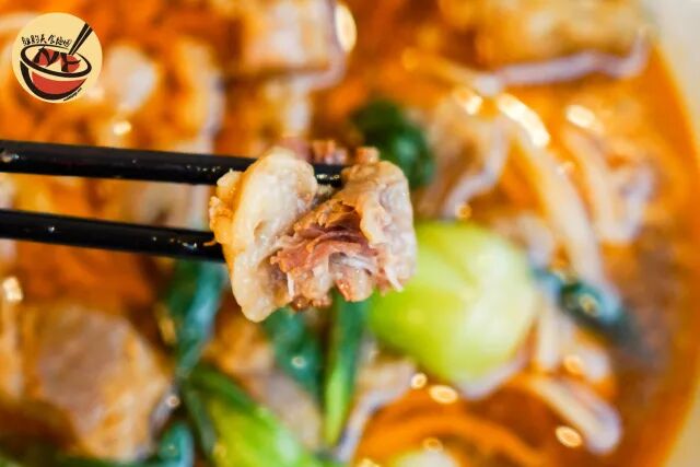 这碗红烧牛肉面,可是名副其实的“图片与实物相符”,再也不用上方便面的当了。牛肉汤底是高汤熬制,微辣,上有大块牛肉,肥瘦相间,炖到软烂,再配上几颗小油菜,面与兰州牛肉面用的是一款,皆是店里手拉而成,很新鲜。
