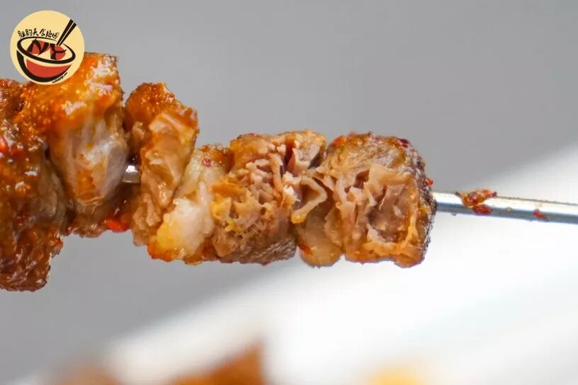 羊肉串肉质很好,处理的十分干净,大小块头适中,重要的是肥瘦配比特别好,既有羊油的香气又不至于太过肥腻,同时软硬适中,不硬却仍保留适当嚼劲,羊肉鲜味尽显,一秒回大学,感动。