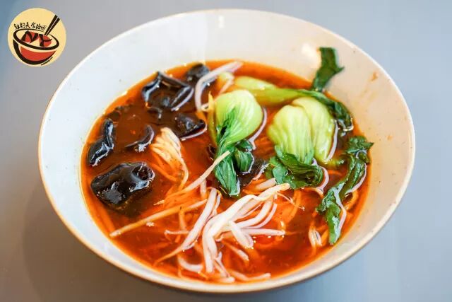 酸汤面里有木耳、小油菜和豆芽,汤底不辣,整体口感便酸,大概是番茄酱的酸与一点醋酸的混合口感,我个人吃不习惯,但同行有喜酸的小伙伴非常喜欢,另外这一碗可能也比较适合不是很爱吃肉的同学。