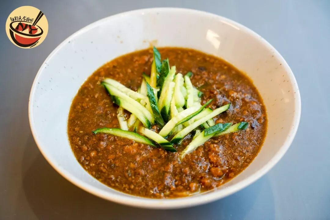 敦煌的炸酱面和老北京炸酱面的味道不太一样,酱味偏似黄豆酱与肉酱混合的口感,以豆香+肉香为主,肉块切的很小与酱完美融合在一起,好吃的另一关键在于酱的干稀程度熬的正合适,拌起来均匀的挂在每一根面上,香而不咸,配上粗细长短刚好的爽口黄瓜丝,夏天如果没胃口就来一碗这个绝对没问题。