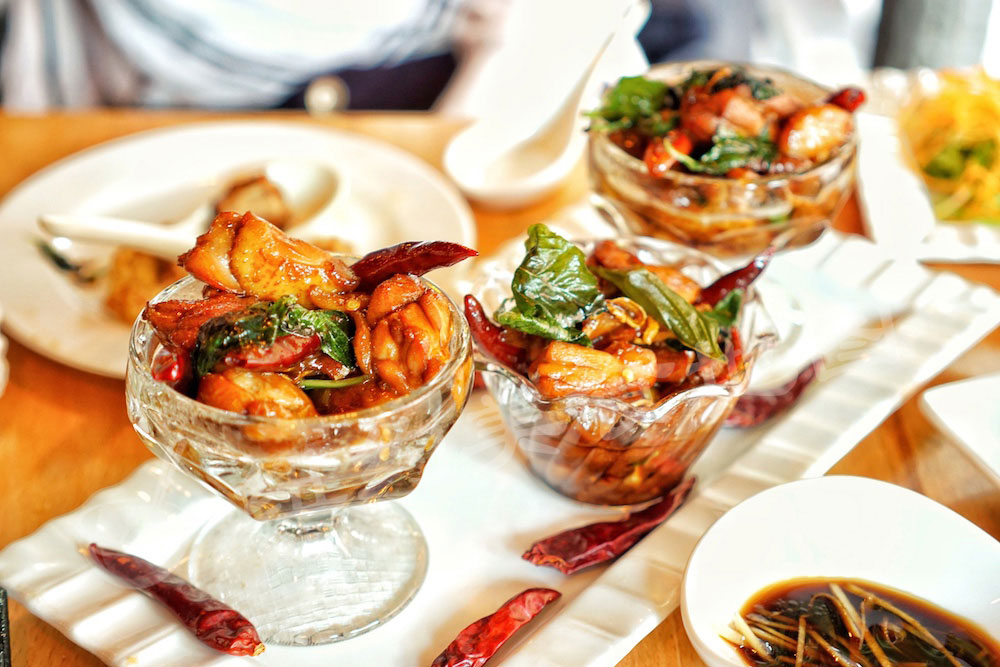看得出,师傅走了一回诙谐路线。将纯正台式风味的三杯鸡,用象形的手法表现出来—真的是用三个大杯子装了盘。三杯鸡肉质尤其鲜嫩,油而不腻,有微微的回辣,但还是以浓郁的酒香混合鸡油香再加回甜为主的口味。