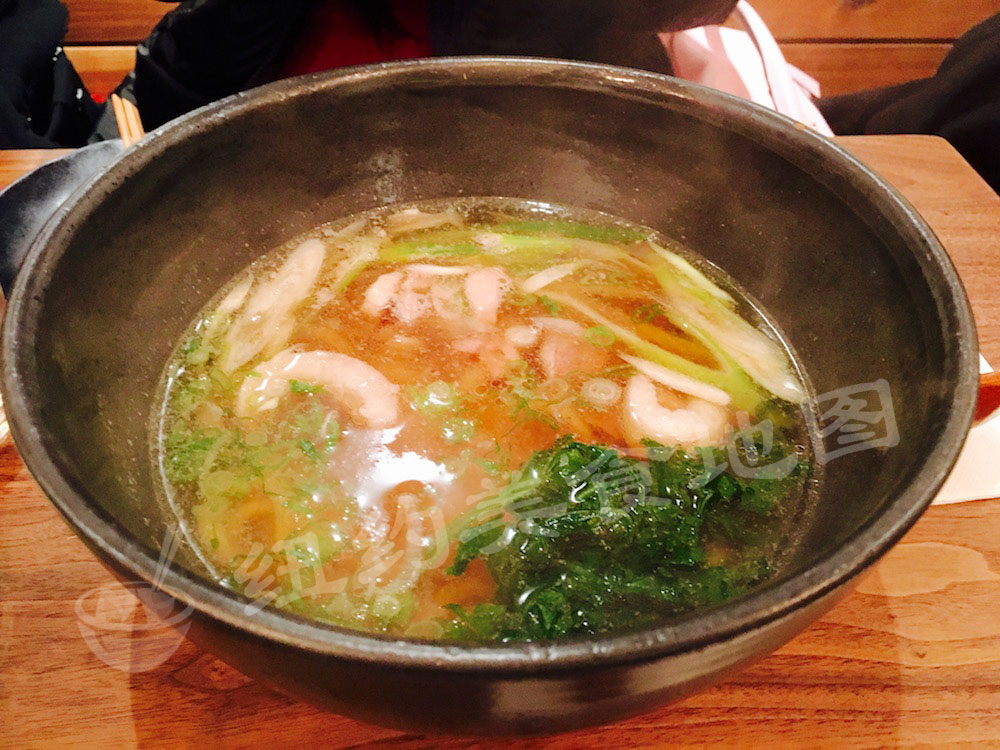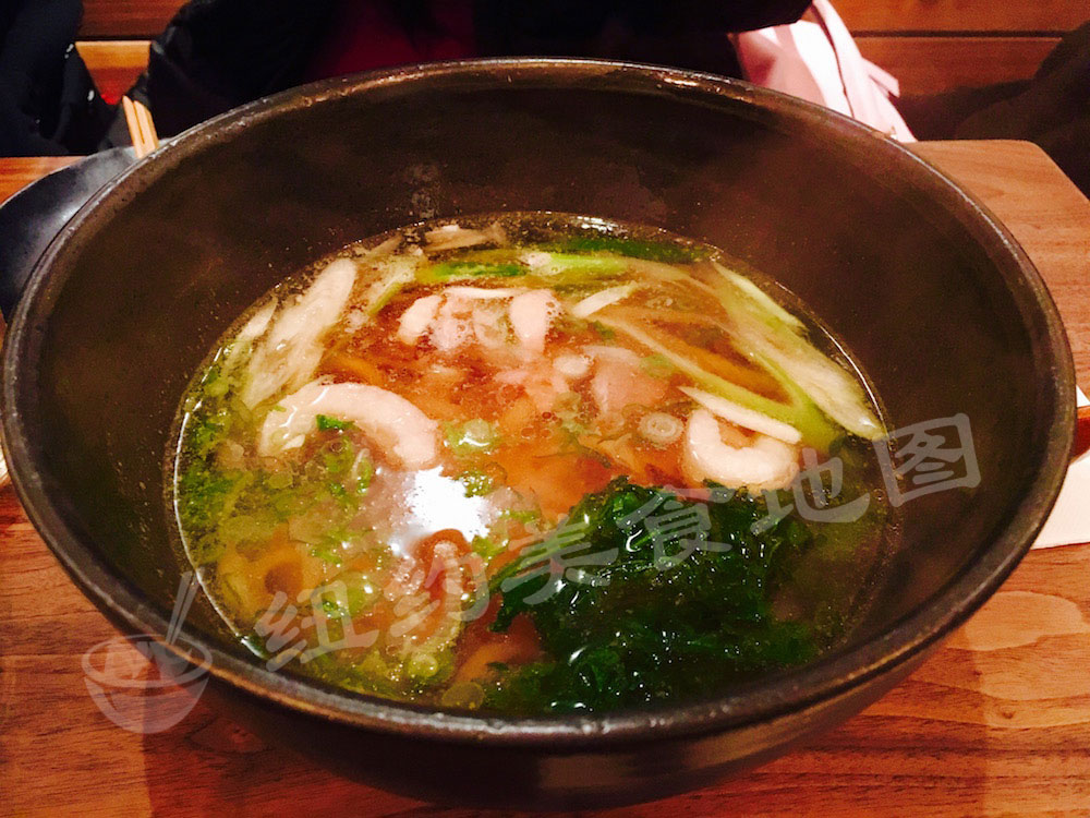 raku-21用樱花虾加酱油熬制的热汤底,入口是淡淡的酱香,回味有很明显的甘甜,应该来自樱花虾。乌冬的爽滑在入口的那一刹那着实给了不小的惊喜。新鲜的手工乌冬面特有的透亮的色泽,在轻微酱色的热汤里显得晶莹。在筷子的辅助下,几乎是跳着入口的,轻轻的咀嚼便可充分感受那份滑韧盈余的独特口感,细嚼后有小麦的香甜。