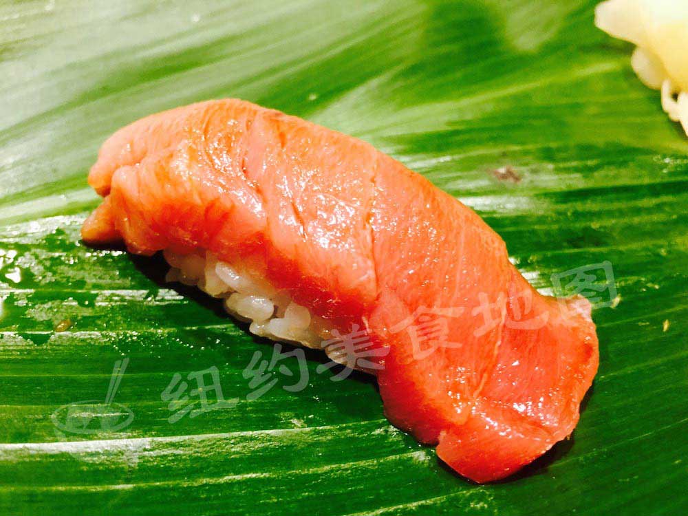 几乎没有油脂的鲔鱼口感有点像鲷鱼,很甜,微微的脆度,第三贯就上鲔鱼也是蛮大方的。。。