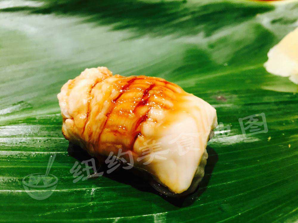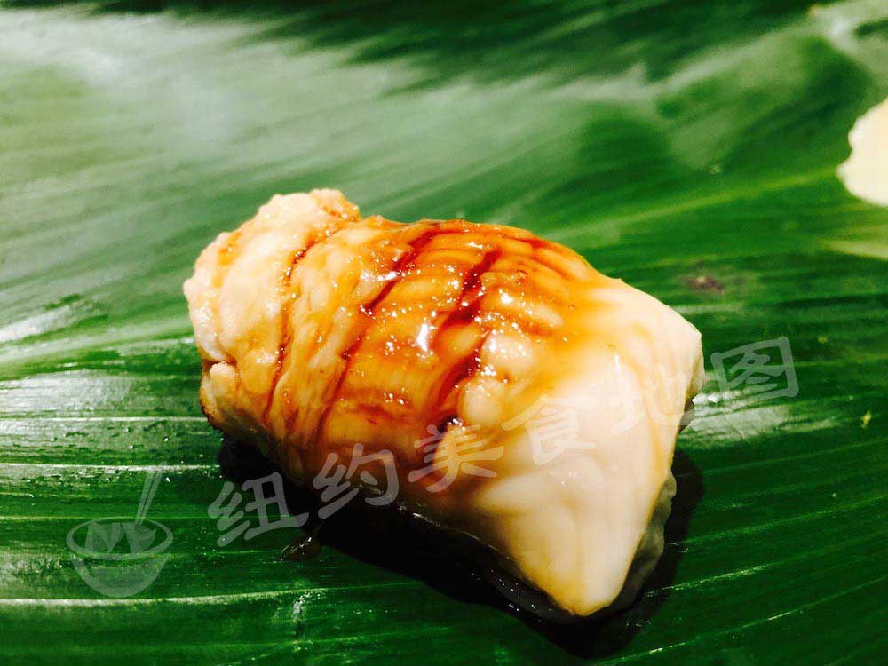 很特别的酱烤星鳗,酱汁调的很有层次,有趣的是姜汁儿的味道很突出,星鳗照旧肥腻,姜汁儿的余味让鳗鱼的鲜度提升并且悠长。