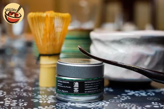 热水温过杯子后,将抹茶粉在漏勺里打散倒入碗中,用茶筅快速打100多下,充分融合直至刷出泡沫,一杯茶香四溢的薄茶就做好了。
