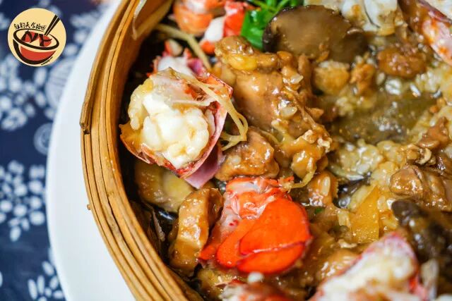 糯米荷叶龙虾蒸上鸡 Lobster & Chicken over Sticky Rice in Lotus Leaf $59 ($39/half)