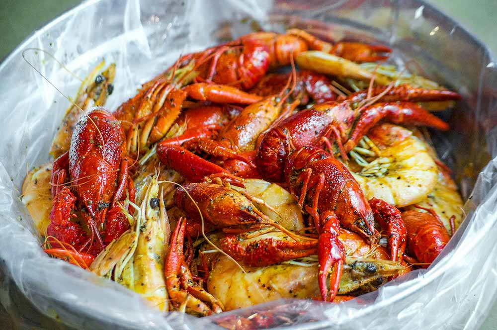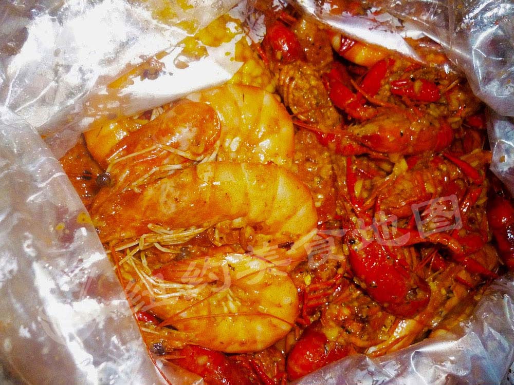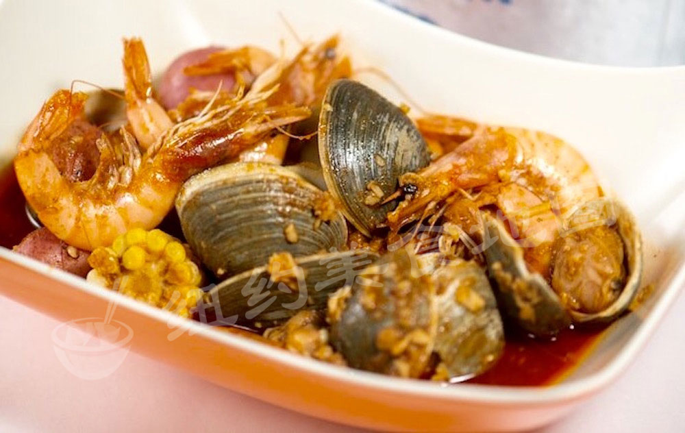 Cajun 一词源于法语“les Acadiens”,最早由加拿大的法裔移民移居至路易斯安那,结合当地特色逐渐形成的一种混搭的饮食风格。路易斯安那多水流沼泽,因此水产资源非常丰富。而广受国人喜爱的小龙虾,其实早在十八世纪末,就成为路易斯安那人民的日常饮食。CAJUN 风味的小龙虾滋味浓郁,通常会有 BOIL 的方式加 CAJUN SAUCE 混合玉米土豆和别的海鲜一同连壳混煮,如图