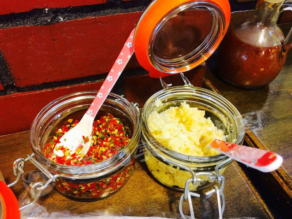 还有配汤、蘸料也举足轻重,不过这两者根据地域个性差异较大,有的地方诸如马来西亚风味的海南鸡偏好有些甜酸味的加了姜末的辣酱;泰国的蘸料更偏重于酱油和姜末辣椒调制成的咸辣。喜欢哪种也是因人而异。