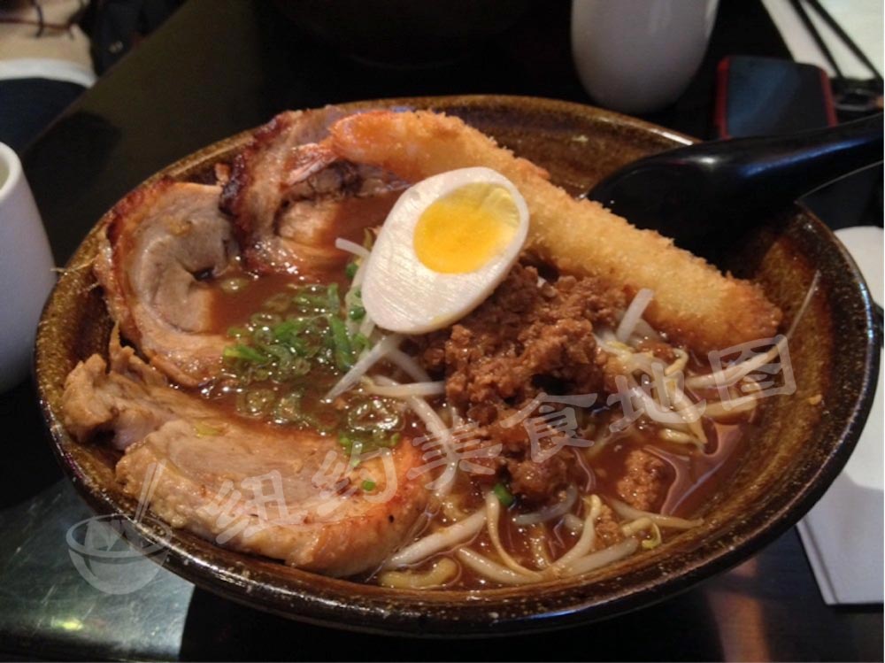 ramen-16隐藏在中国城的这家日式拉面店,小编把它定义为创意拉面。从店面设计看来就很简洁时尚,菜单中也是有许多创意。比如在猪骨汤中加入柴鱼昆布汤(wadashi),制成了和风猪骨汤面,比传统的豚骨拉面,多了一些清爽口感。再比如以海鲜汤底配以松露的海鲜拉面,顿时就高端大气了起来。也有像柠檬加黑胡椒汤面这样神奇的搭配,据说很受非亚裔客人的喜爱。小编推荐:中午有午餐特价套餐,自选的一碗面配一碗叉烧肉炒饭(Chashu Don)。他家的叉烧肉炒饭是一绝,强烈推荐。