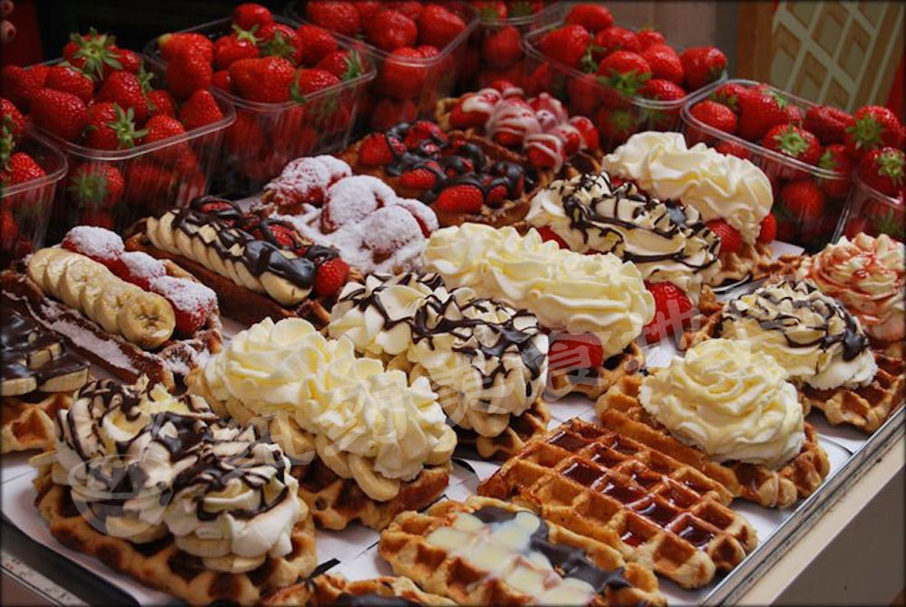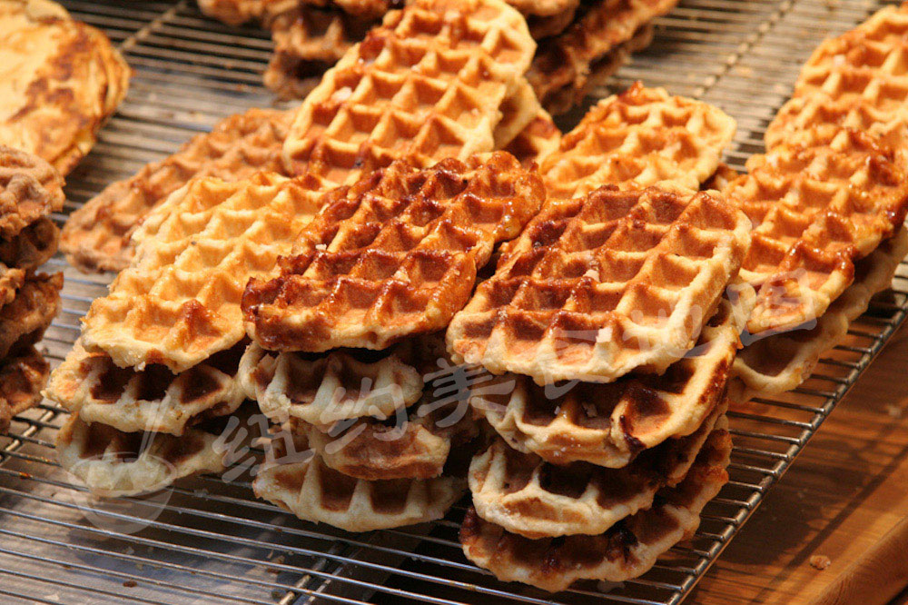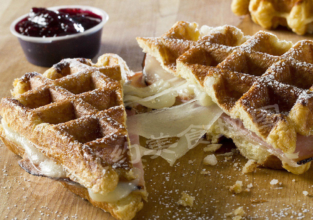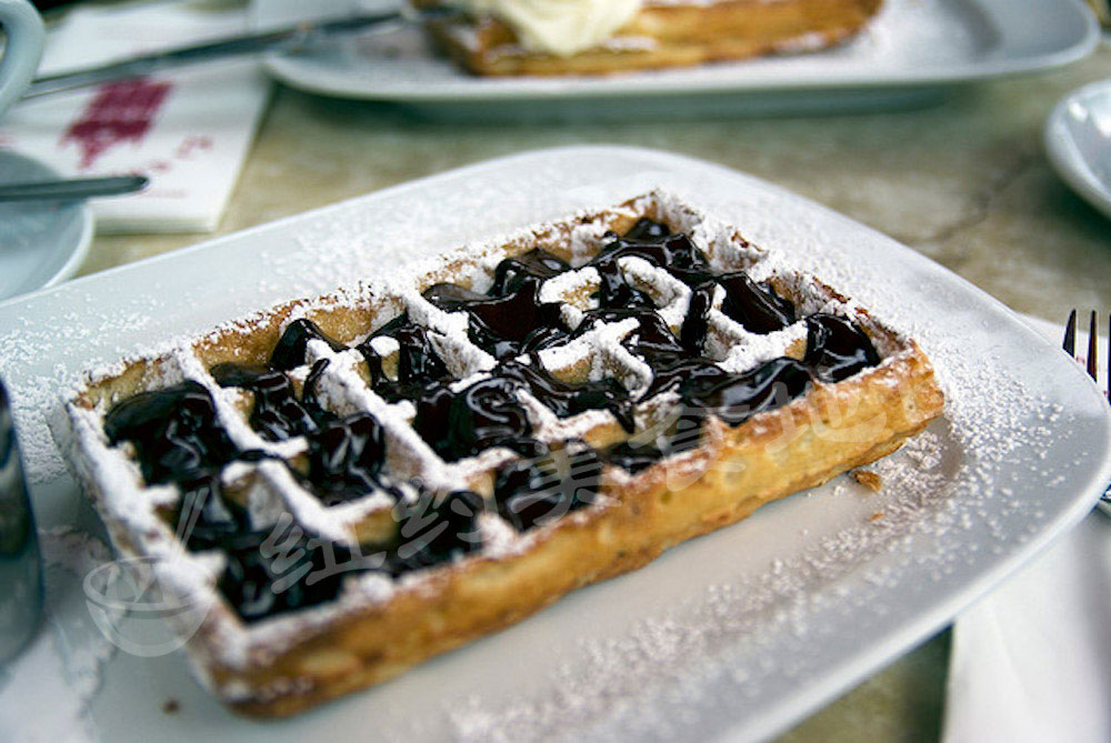 法式的Flemish waffle多用热牛奶和蛋白作为配方,因此waffle口感较为软糯,搭配热糖浆或是冰淇淋都很不错;