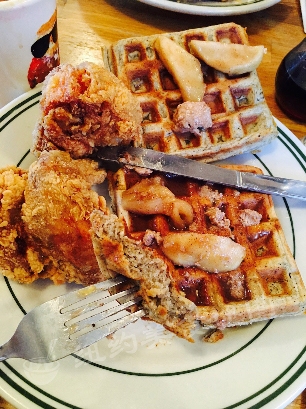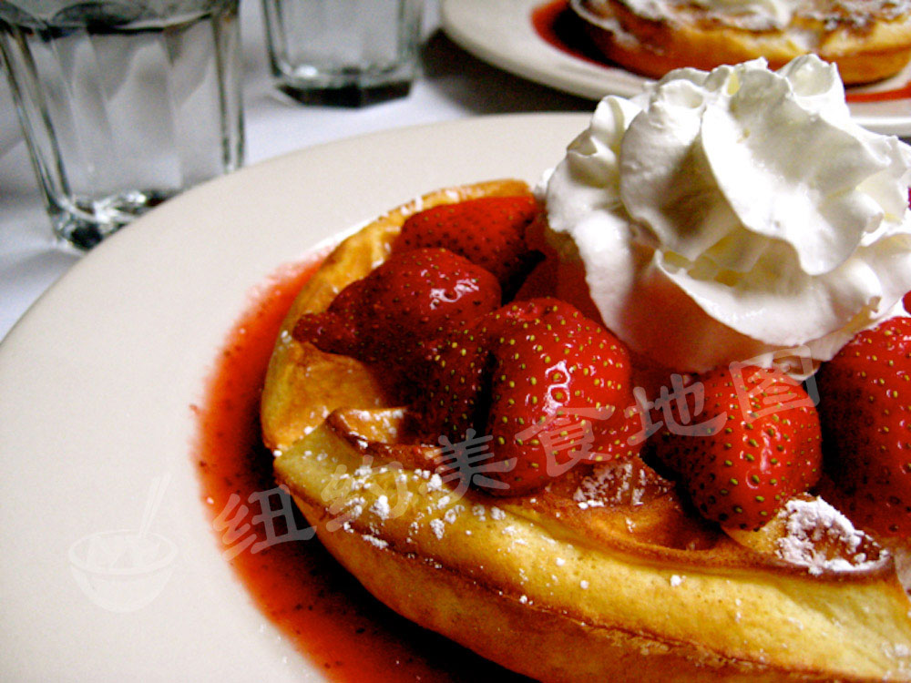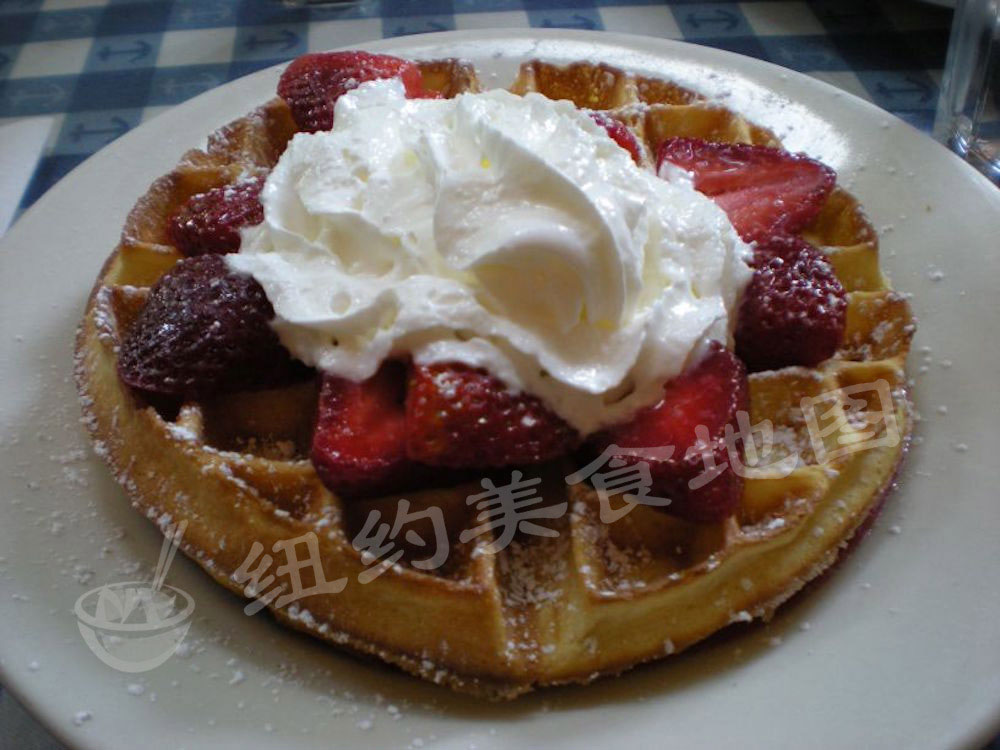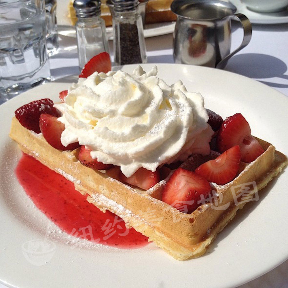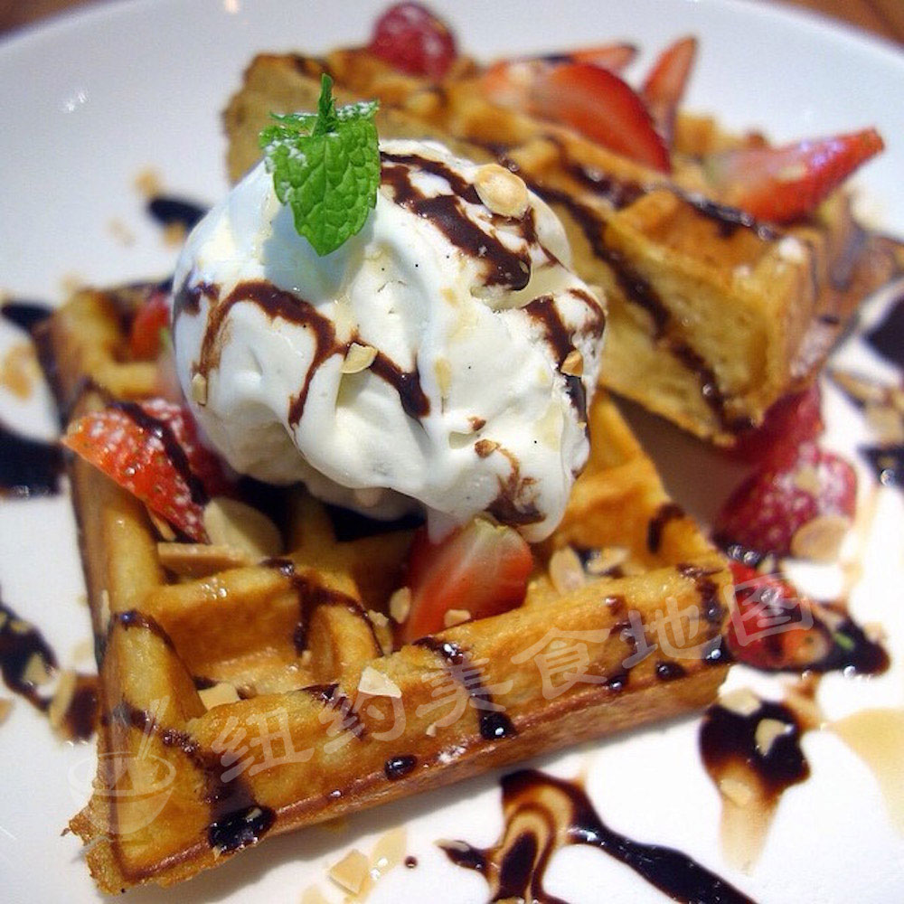 最后来看看咱大美帝的waffle们,兼容并包的美国精神也在这儿体型的淋漓尽致;美式waffle形状不一,大多较小较薄,多用泡打粉代替酵母发酵,甜吃可配各式奶油水果冰淇淋糖浆;咸吃则有南部黑人的灵魂食物—炸鸡配waffle。今天,地图君就给大家介绍几家纽约吃WAFFLE的好去处,松软扎实的内里,不论是配水果奶油还是炸鸡cheese,都是很适合春天的小美味哟~
