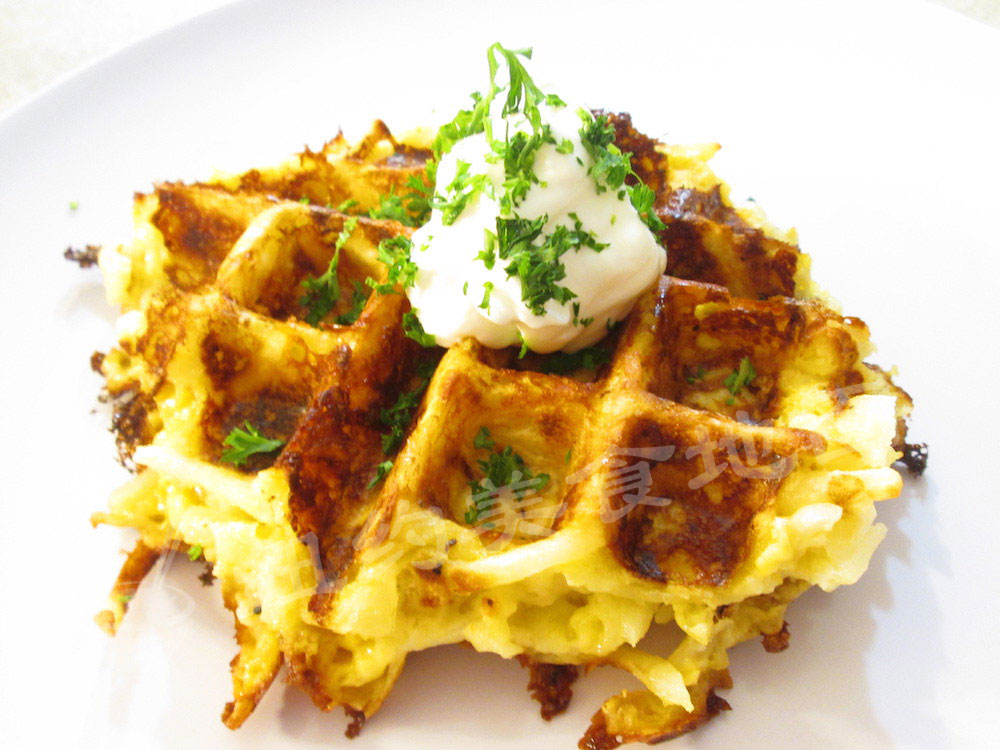 英国人大概是太爱土豆了,因此发明了用土豆代替面粉的Potato waffle,常常配cheese和胡椒加上煎蛋吃;
