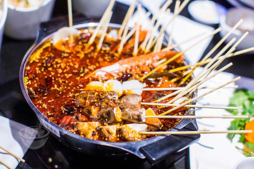 强烈推荐:加辣红汤麻辣锅串串香配秘制鲩鱼片,香辣蟹,烤鸡翅,烤金针菇,麻辣小龙虾,烤年糕,冰饭