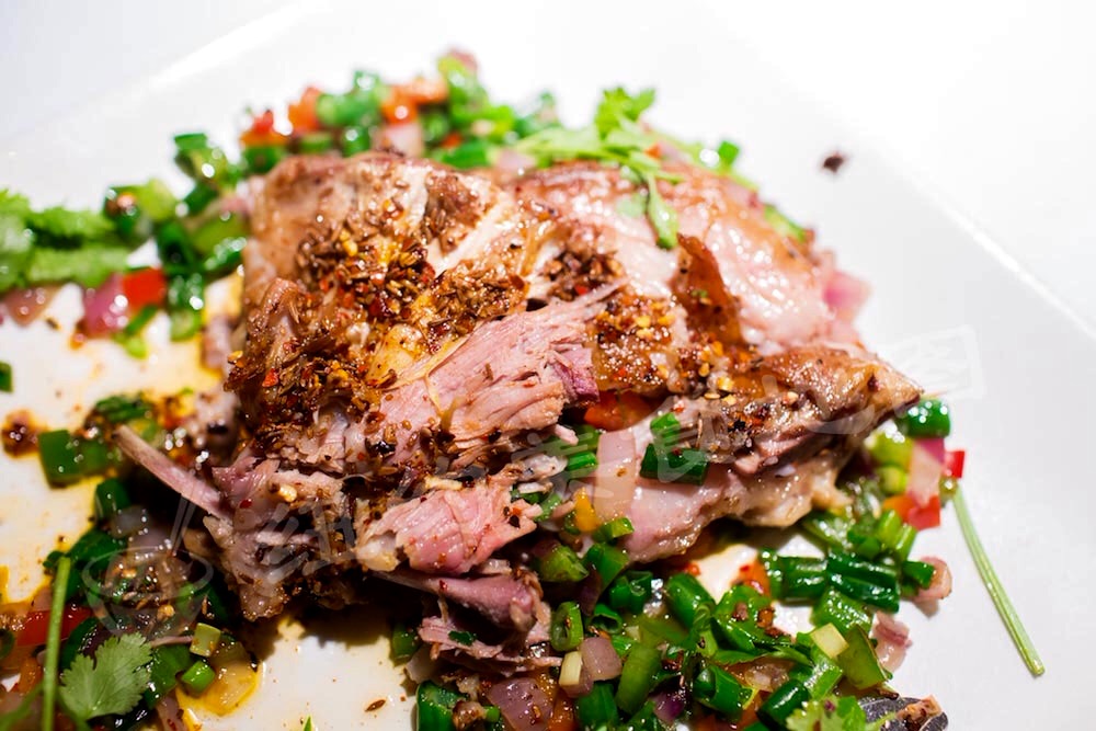 一整块羊排,用低温处理和特质的卤法将羊排肉焖的软烂,入口即化的羊油配着鲜嫩略有嚼头的羊肉,表皮烤的酥酥的脆皮满是香脆的孜然等辛香料,满口羊肉的鲜嫩和香;羊排的熟成度控制的非常好,轻轻的用手就可以让骨肉分离,名副其实的“手抓”,配菜的剁椒豇豆碎很新颖,解腻的好主意!整道羊排肥而不腻,香而不膻,很适合冬天吃的一道滋补佳品!