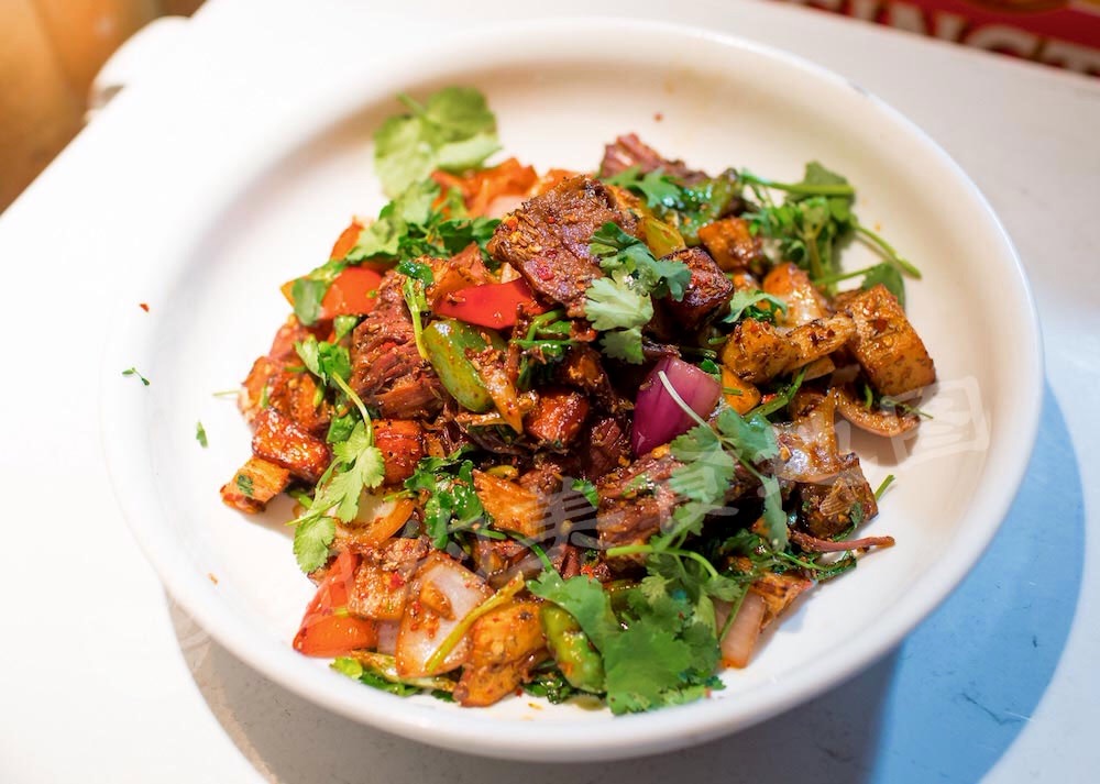 超级推荐的孜然牛肉,虽然是改良版的,除了好吃还满是惊喜。低温处理的牛仔骨口感像是七成熟的牛排,