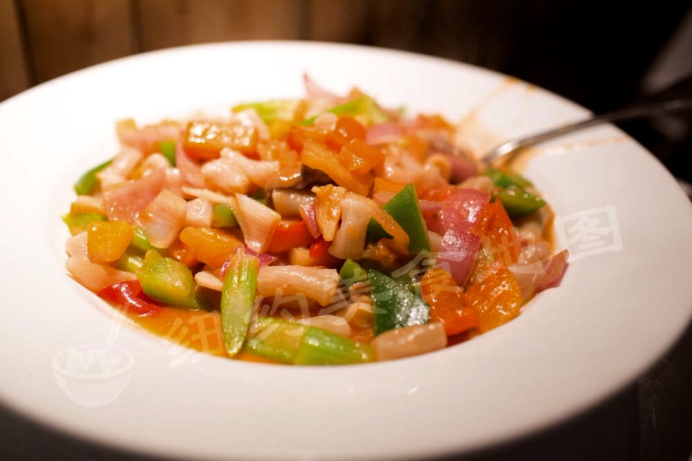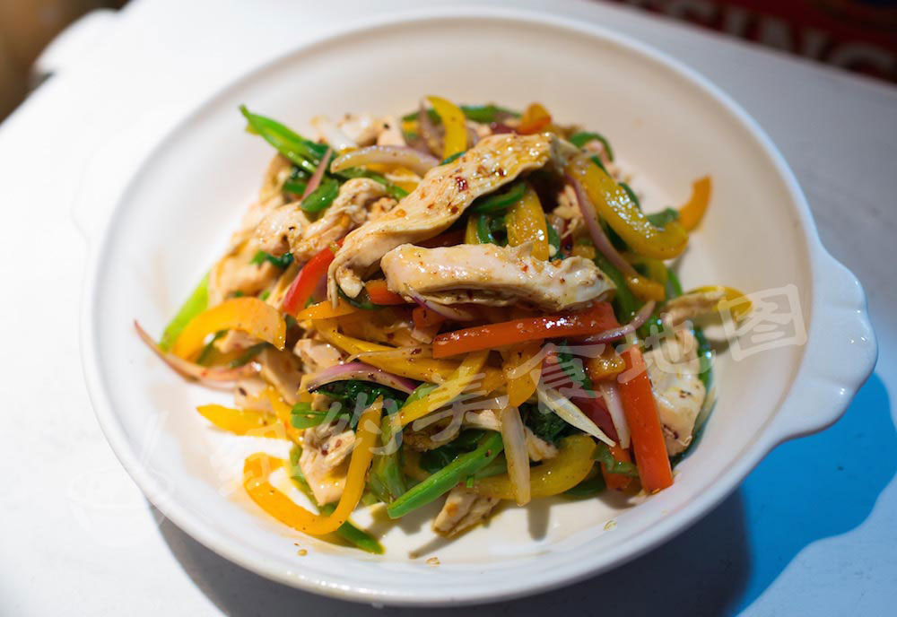 虽然不是地图君心心念的新疆手撕椒麻鸡,这道改良版的椒麻鸡又不同于之前介绍过的那款,除了嫩而不柴的鸡胸肉之外,干麻微辣的口感更是一大特点,再配上甜味儿为主的彩椒丝儿,营养口味都蛮不错。