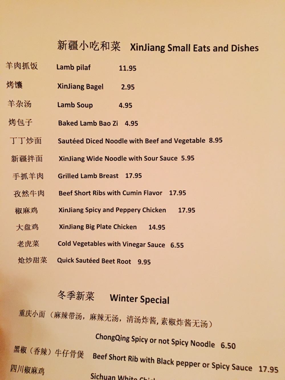 扭腰今年的冬天忽冷忽热, 一下子零下十几度冷的非得来个大暖锅才能活下去,结果转天就暖阳和煦让人直想去室外来个阳光BRUNCH。就连松鼠们都胖的不要不要的了,有吃货还在为冬天吃啥而犯愁。如果你在这样的季节吃腻了火锅烧烤,不妨试试新疆小吃,除了滋补御寒的羊肉料理,味儿重汁儿浓油香的特色新疆小吃一定能让你在枯燥干冷的冬季食指大动。即日起中国小吃CHINA GREEN推出新疆小吃主题月,有手抓羊排,羊肉抓饭,烤馕,烤包子,丁丁炒面,孜然牛肉等等来自新疆的特色美食,1/9/16-1/30/16,只要出示纽约美食地图关注页面和转发此文至朋友圈的截图就可获得独家9折(Min消费$20)。热辣过冬,准备好了吗!