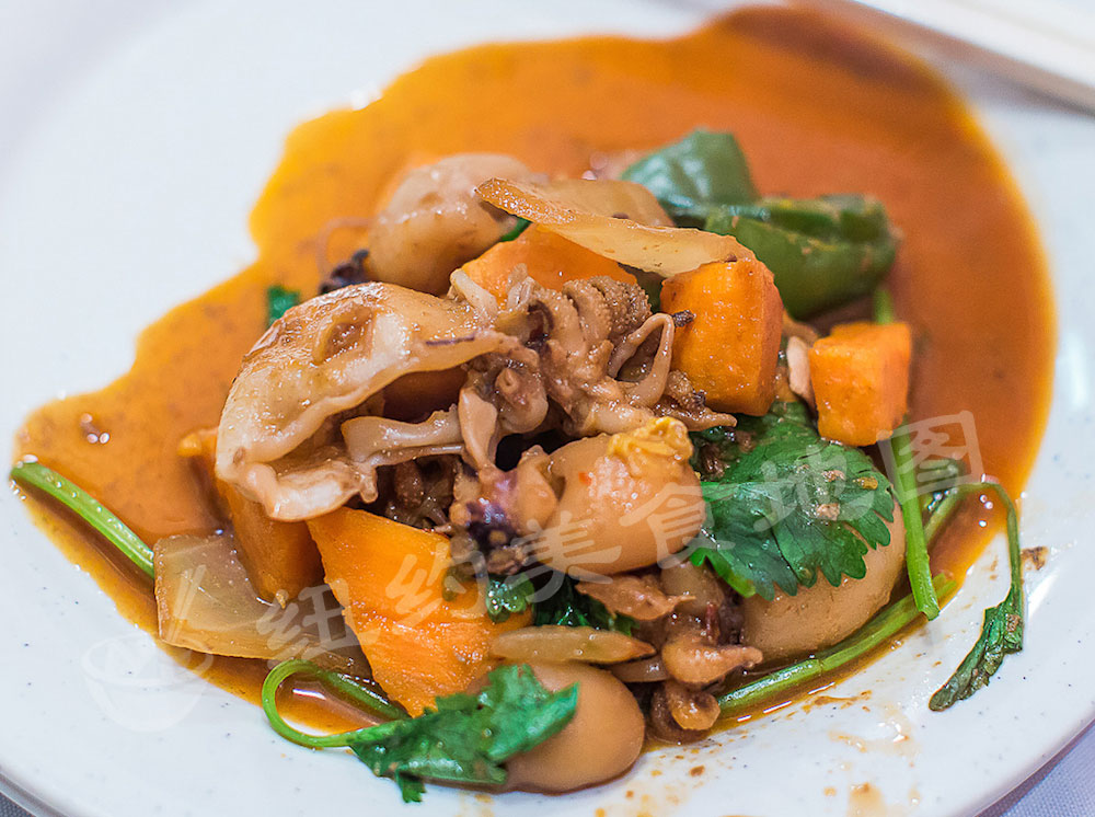 gu-xiang-wei-a-24这道也是个大菜,建议人少的吃货们这个和土锅系列选一个就够了。我们试了三汁儿焖墨鱼仔,服务小哥会在你桌子边帮你现做。墨鱼仔处理的很干净,和蒜头南瓜青菜等配料,加上老板秘制调出的三种SAUCE一起焖制熟成。大概20分钟左右,就可以吃了。这道菜看着清淡,辣度的后劲儿还是可以的,墨鱼仔焖的倒是蛮脆弾滑嫩,也很入味,但是觉得可以再咸一些会更好,比较墨鱼仔的海腥气比较重;最出彩的是南瓜,焖的外形完整却入口即化,甜甜的很好吃。这道菜分量很大,建议大家人多一些再点。