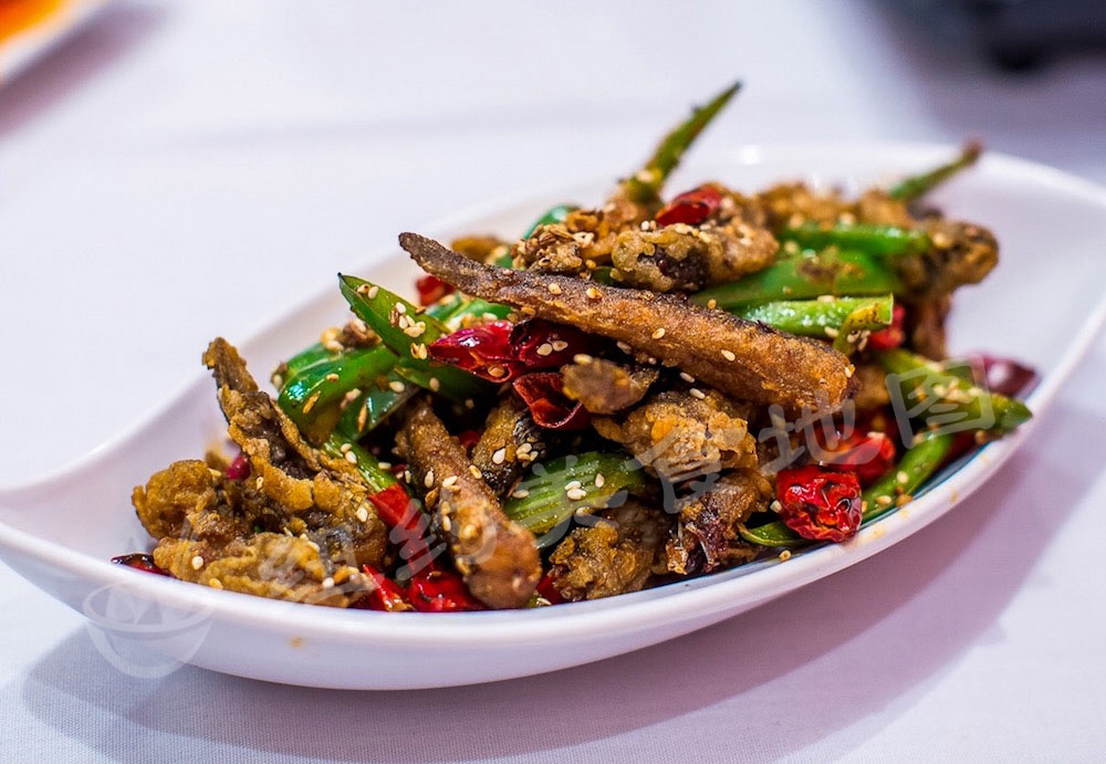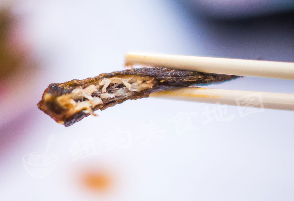 gu-xiang-wei-a-38 gu-xiang-wei-a-41 其实点单的时候并没有对这道菜报多大期待。来自水乡的小编从小到大没少吃这种肉质及鲜嫩但十分难料理的河鲜,家乡的做法是将鲜活的泥鳅洗净冷水入锅和豆腐同煮,随着锅内温度的升高,泥鳅会自发往温度较低的地方钻—于是就有了泥鳅滚豆腐这道菜,听起来略残忍。。。但是即使是活泥鳅,处理不好也有很浓的土腥味。但这道香辣泥鳅却完全没有。泥鳅炸的干干的,外酥里嫩,油温控制的很好因此泥鳅很酥却没有油腻感,并且入味;牛角椒和干辣椒呛的很香,加上顶部的白芝麻,是一道爽辣酥香的开胃好菜。