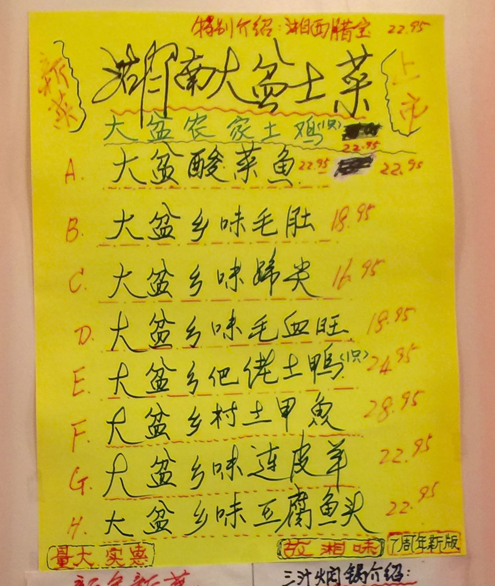 前 阵子有位叫Calvin Trillin的大叔为中餐(确切的说是美式中餐)写了一首打油诗,大意就是中国的省份没完没了,菜系之多之繁琐让人应接不暇,心生恐惧。确实,中国餐饮 文化之博大精深确实不是几盘菜就能表现的出来的;让适应了几十年芝麻鸡陈皮牛本楼捞的老美接受肉夹馍和水煮鱼,已经着实不易,更别提八大菜系。单说一个湘 菜,粗略一分就能分出湘江菜、湘西菜和洞庭菜。湘江菜以官府菜闻名,湘西擅长烹调山乡味浓厚的腊味,洞庭菜以鱼著称。而今天小编要给大家介绍的湘菜,是湘 菜中最正最有家味的大盆土菜!除了各式土锅、香辣锅、焖锅,各式湘味儿小炒也酸爽够味儿。春暖花开,LET’S 吃“土”!即日起为期两周4/16-4/30/16,出示地图粉关注页面和转发此文至朋友圈即可获得任意消费都送一份独家手工秘制的小点一份。想知道送的是啥?文末揭晓!