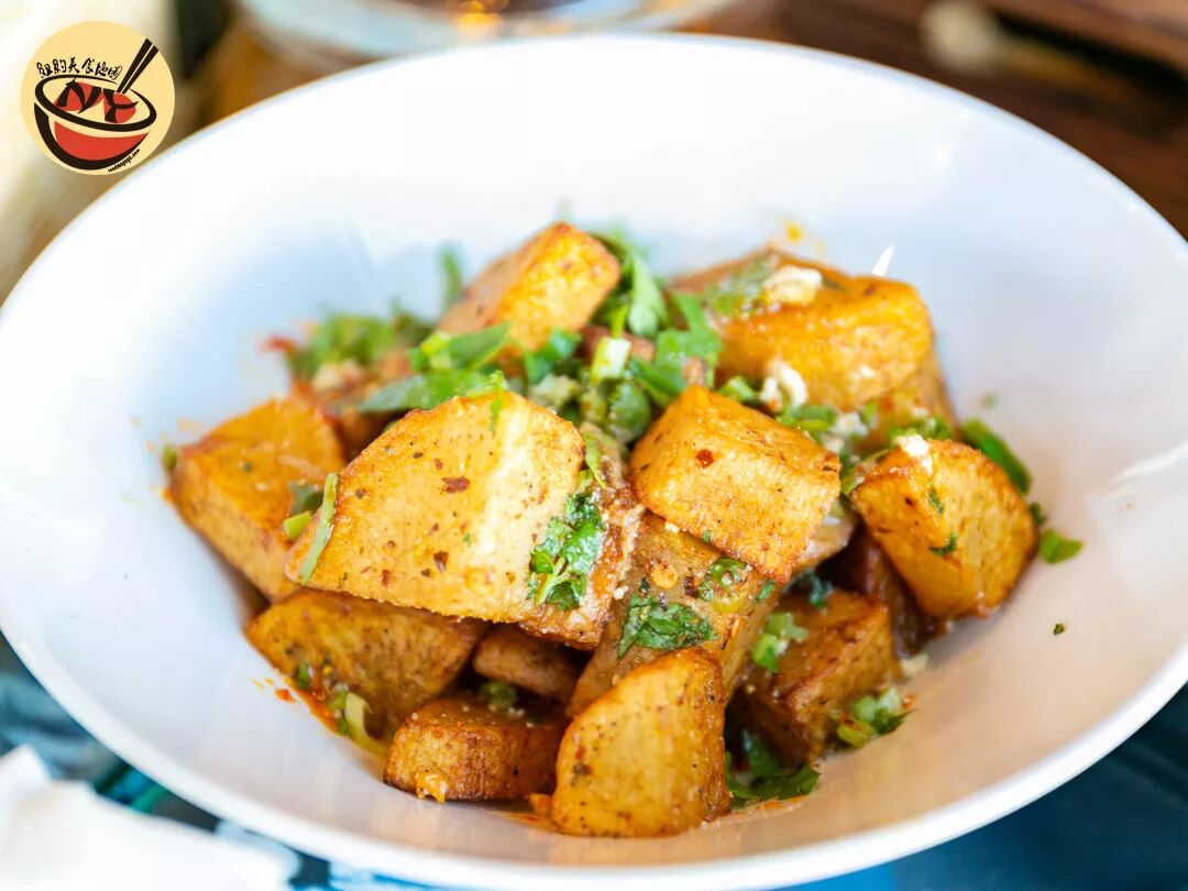 块状的洋芋,咬下去,内芯并非绝对的绵软,而是软中带着成块的质感。非常适合聊天吃几口,等着主菜上桌!