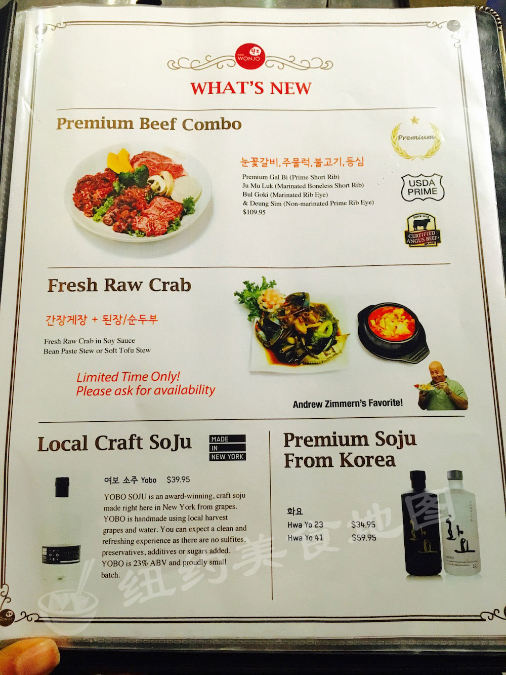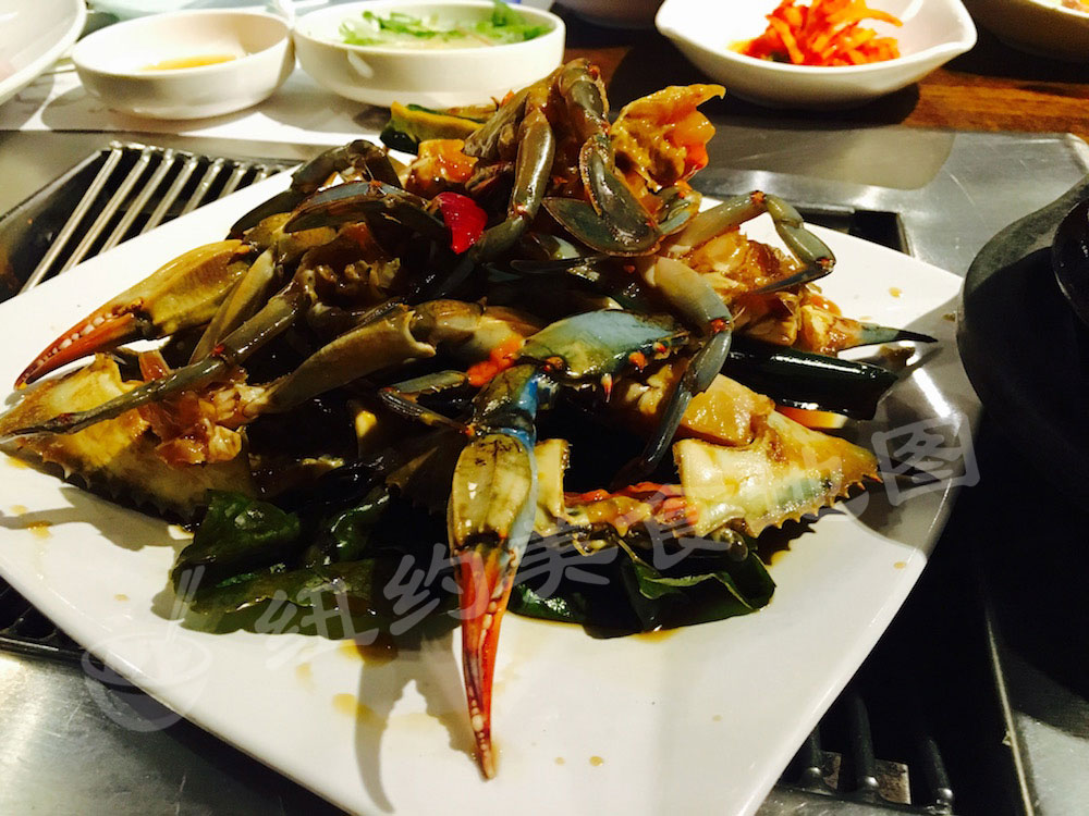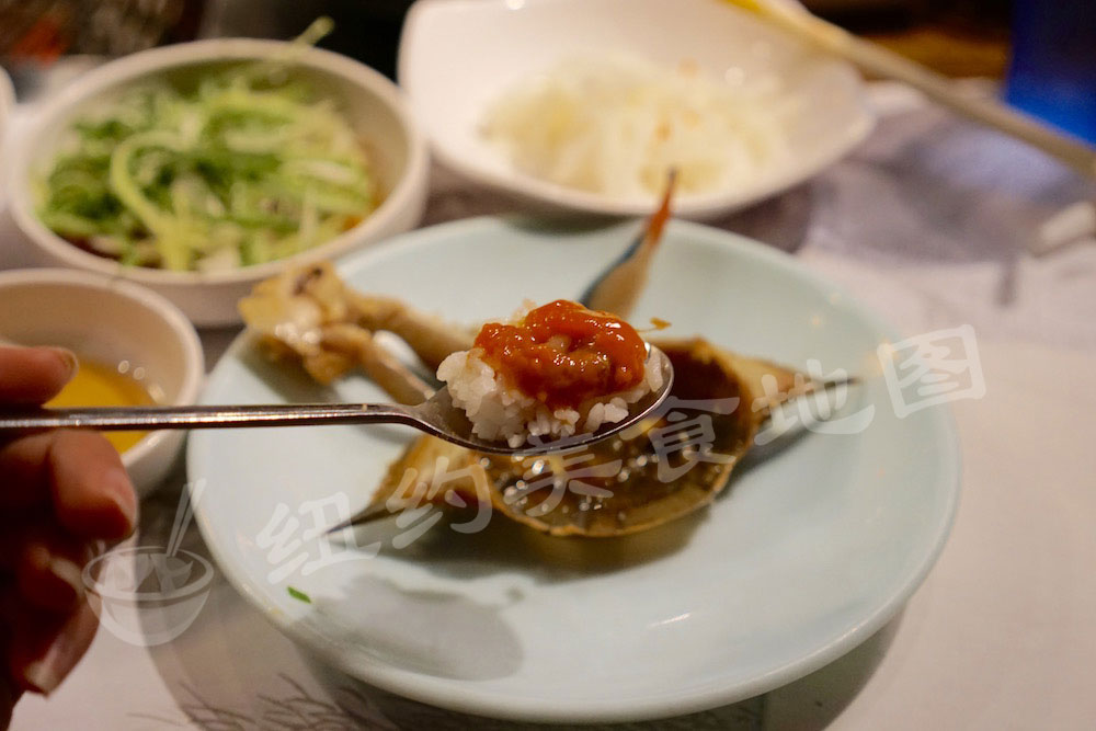 歪个楼再说说韩国人的酱螃蟹,其实跟我们的醉蟹也是蛮像的,应该是腌料的组成上略有不同。而且用酱螃蟹配粥,好像是韩剧里经常出现的餐点。但是好像因为纽约这边卫生局的限制,能提供这道新鲜时令菜的餐厅并不多。碰巧前不久和友人在KTOWN吃饭,惊喜的发现NEW WONJO限时推出了自家秘制的酱螃蟹,味道也相当不错,只是一份这么几只,配一份海鲜豆腐汤的SET,要价$29.99,不同的风味,也可以去试试。
