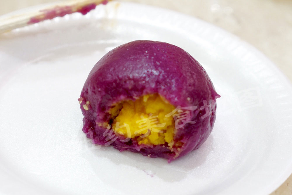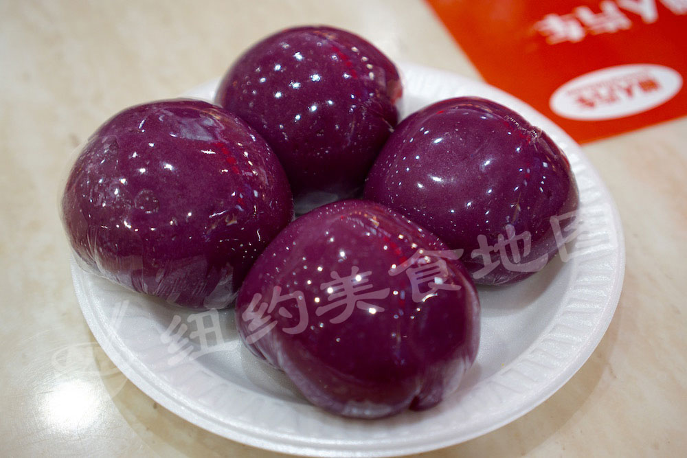 再说回青团姐妹偏之紫薯青团,大师傅挑选日本紫薯做了团子,内调甜咸两种馅儿。甜的搭配自己做的奶黄,咸的还是咸蛋黄肉松。紫薯团子看着喜人,并且吃起来有种淡淡的紫薯香气,回味也是甘甜。奶黄馅儿的甜口蛮不错的。一份四个,甜口的$10,咸口的$12.