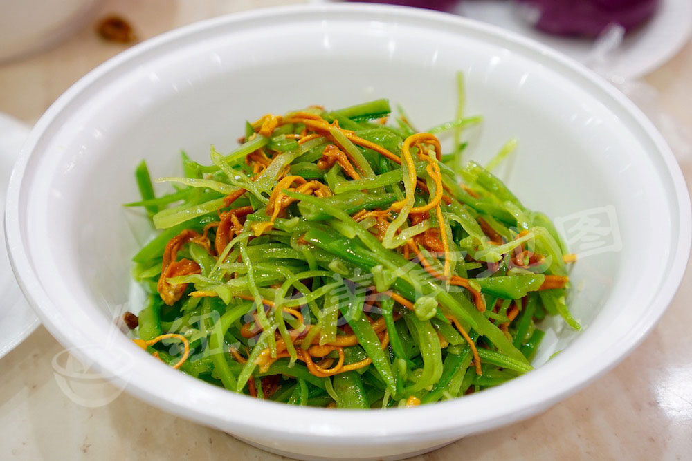 还有夏季新鲜的荷兰豆拌虫草花,满清爽开胃的。