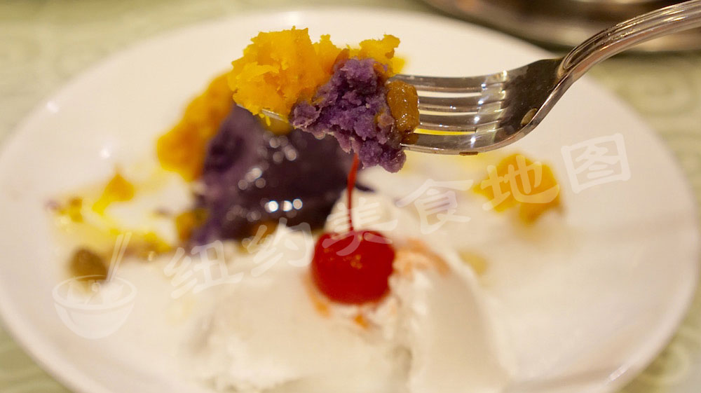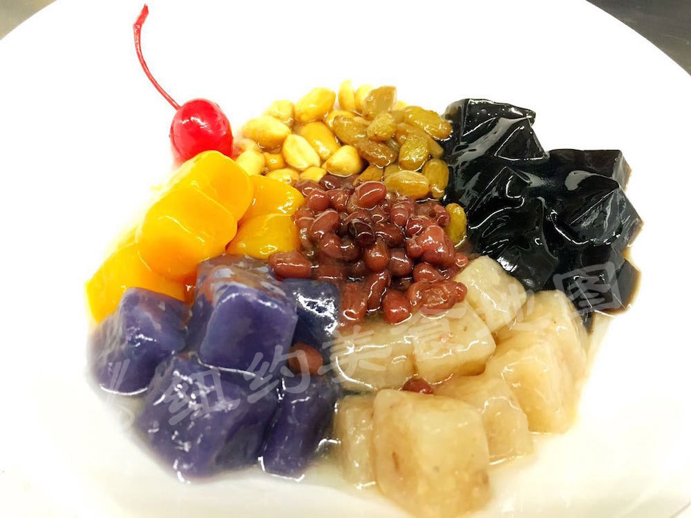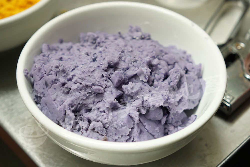 这是小编心心念已久的芋圆!手工芋圆!全部用紫薯泥和南瓜泥加一点点淀粉手工制作。特地去后厨看了师傅在捏,一粒粒纯手工,看着都累。但是吃起来真的觉得–哇哦~