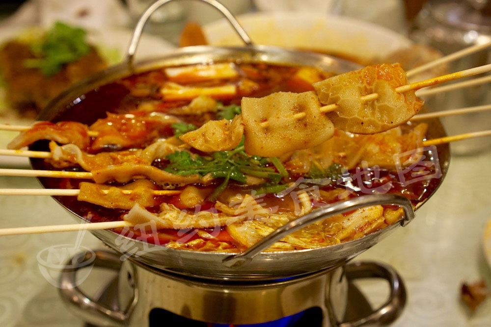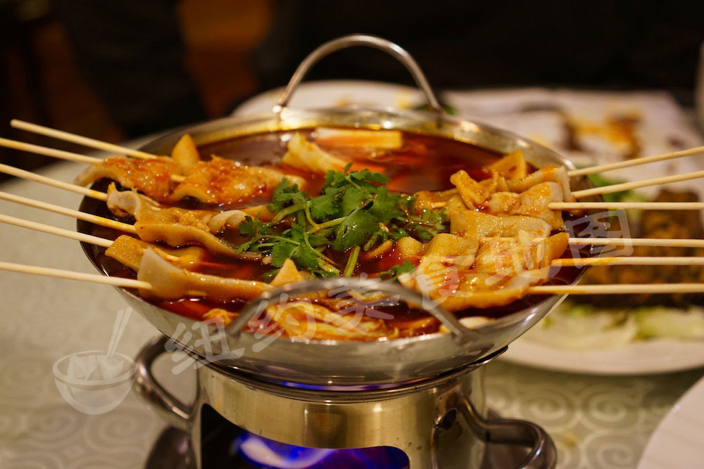 串串香是火锅的“街头版”,将食材用竹签串在一起,