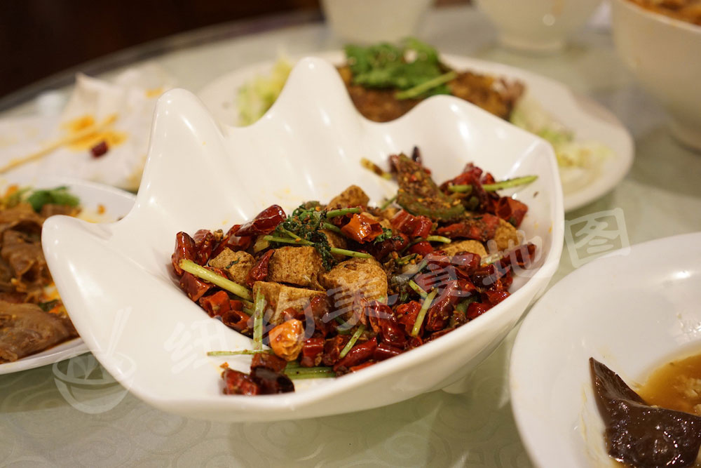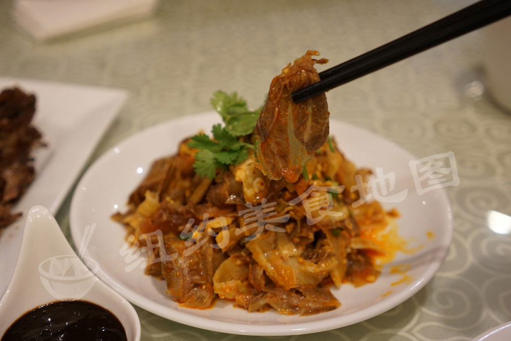 算创新菜!出乎意料的好吃!有点怀念小编家乡街头的炸臭豆腐了!孜然、辣椒粉和花椒粉的比例把握得很好,爆炒后的香气喷薄而出。而豆腐块也炸得恰到好处,外皮金黄爽脆,咬到中间又充满了空气感,颇为有趣。要是能把豆腐换成臭豆腐,那就算坐火车也值得过来试一下~