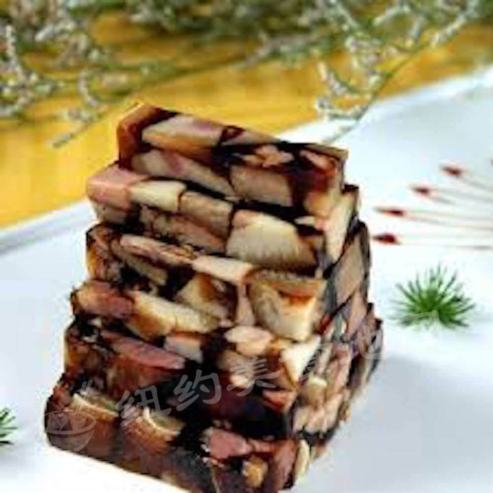 心中的年味:每逢过年姥姥都会做一大盆猪头糕,其实跟东北的皮冻差不多,只是用的是猪头肉,切成小丁儿加料煮出胶质,冷藏以后就成了一大快皮冻,切片切小块沾蒜蓉酱油吃。那滋味儿简直是儿时对过年最大的吸引力。猪头糕凉吃软Q滑腻,配着蘸料几乎不需要咀嚼就滑溜溜的滑进了喉咙,回味是猪头肉的香腻;埋一块在热热的米饭里,糕体的部分融化成酱肉汁,拌着米饭吃特别香!还有碎碎的猪头肉颗粒,每次都能吃下一大碗米饭!听姥姥说以前条件不好,过年买不起肉,偶尔得了猪头肉就用这种方法烹调,想尽办法的能让一大家子人将这份来之不易的年味儿尽可能的延长,传承到现在慢慢成了传统。姥姥现在年纪大了,每年坚持做猪头糕更是盼望在外的孩子们都能聚到一起团圆。