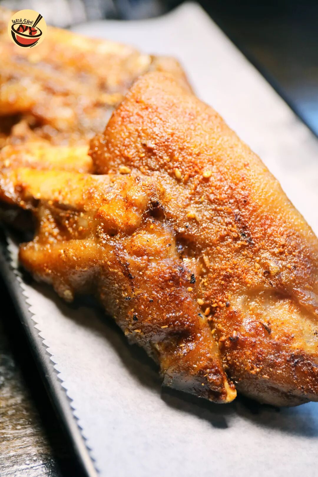 猪蹄肉软糯弹滑,胶质感用眼睛目测都看的清清楚楚。肥瘦相宜,脂肪层丰富但不是很腻,肉质鲜嫩无比且不绵软,香味极浓。卤料的香料并没有被烧烤香盖过,混着香喷喷的油香在口腔里回荡,一波又一波!