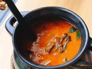 罐罐米线的口味一般比过桥米线浓郁很多,麻辣牛肉的表面那一层厚厚的红油就知道这个米线口味非常惹火!炖煮数小时的牛肉放在米线汤中一起慢煲,等到出炉之后鲜美的高汤跟米线融入一体,味道厚重,且带有陶制品独有的风土味