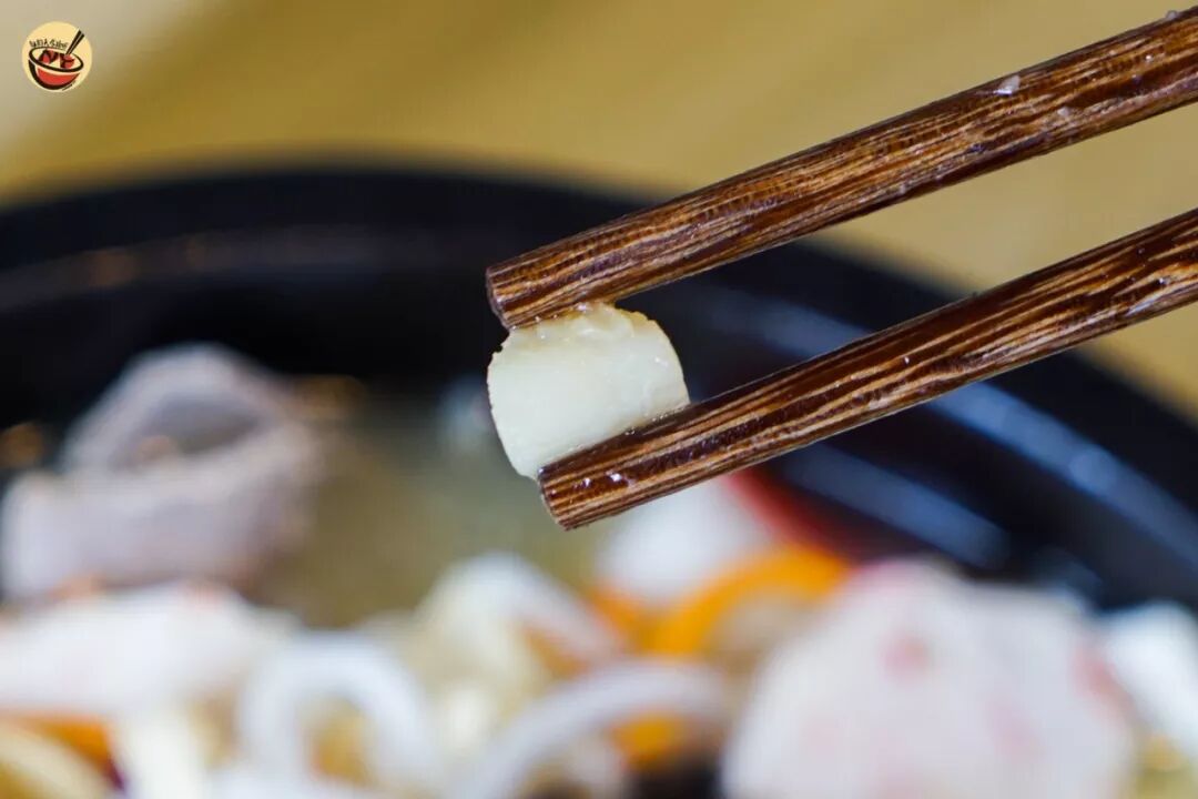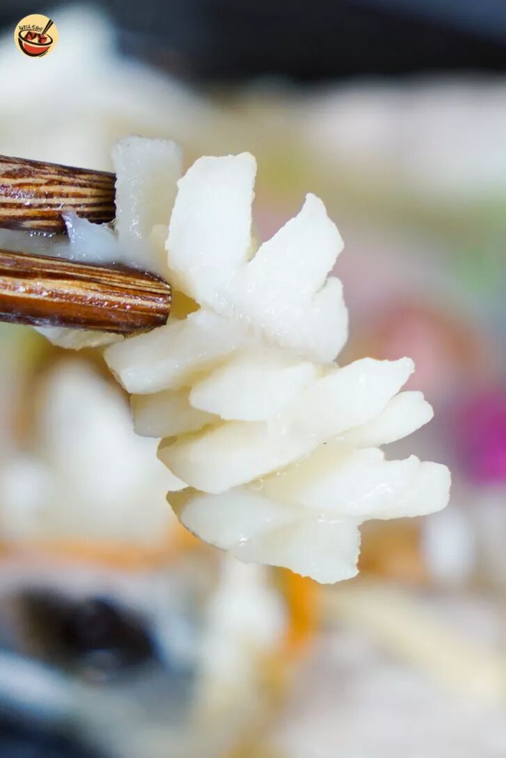 鱼片非常柔软,一夹就会断开,但肉片非常厚实,满口的鲜美;五花肉切片极薄,下锅之后肥肉变得透明发亮,很快融化在嘴里;鱿鱼在热汤里瞬间开花,筋道柔韧,带有鱿鱼特有的鲜香,口感非常弹滑~