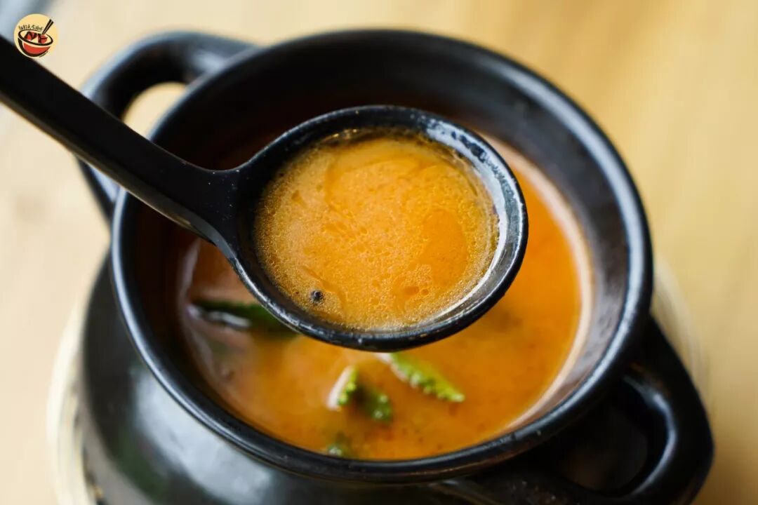 加入番茄后的高汤一喝就停不下来!番茄融化在汤中让高汤满满沙质,汤的质地浓稠厚重;汤底中的灯笼椒在高温中煮出酸辣的感觉;砂锅的材料最大限度的保留了底料的所有的风味,靓汤配米粉,最棒了吧!