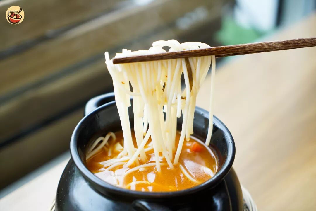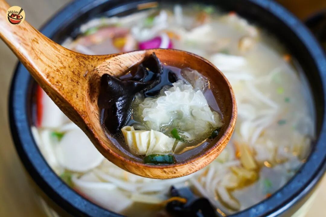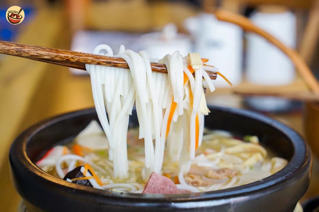陶瓷制成的无盖小罐子煮制的米线可以极大的锁住食材的味道。在陶罐重盛入熬制几个小时以上的高汤,之后再依次放入米线、肉类、蔬菜以及调味料,满满一锅的美味深不见底,等你用勺子探秘!