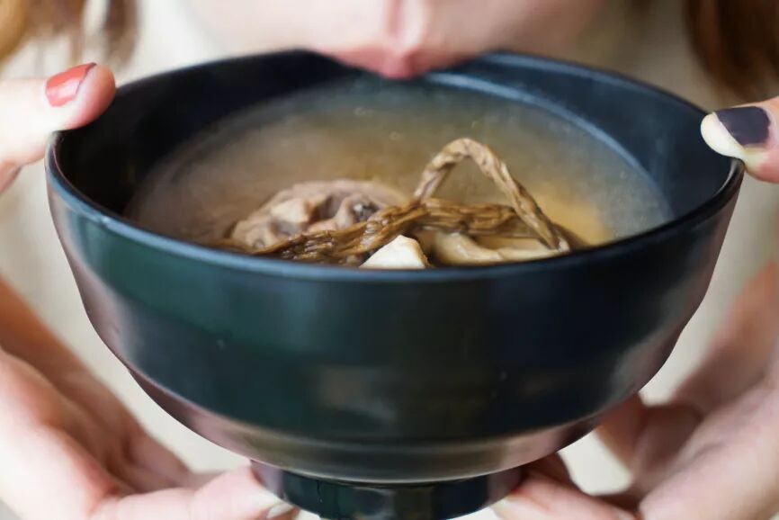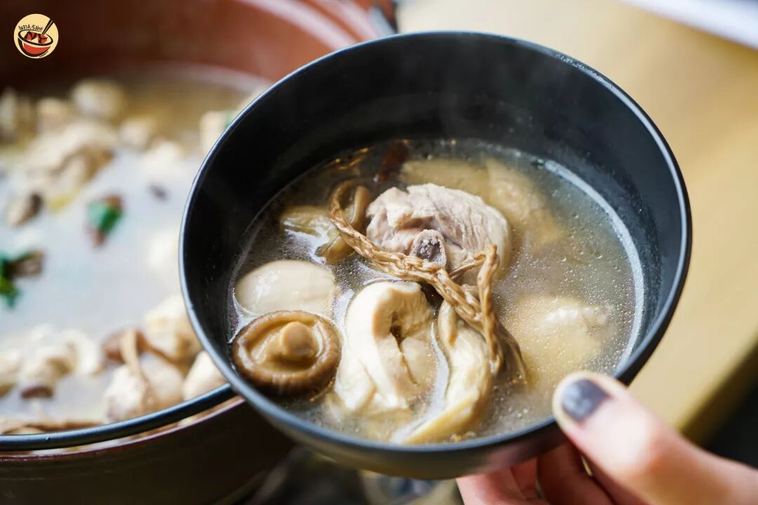 近十种菌菇炖的高汤现下锅的走地鸡在锅中沸腾,菌菇的香气一瞬间冒出,鸡肉的滋味和高汤浑然一体,清香滋补,不重口也不油腻,菌菇炖鸡的味道有谁能够抗拒呢?!