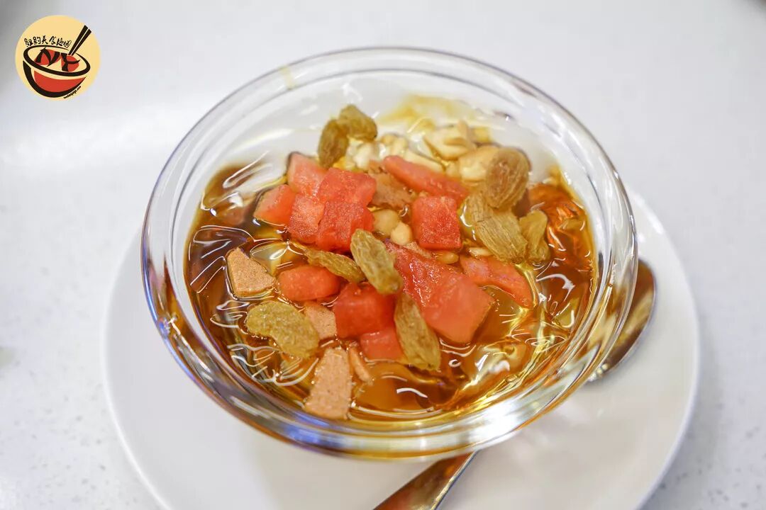 冰粉是夏天的宠儿~晶莹剔透,撒上西瓜,花生碎,山楂片和葡萄干。冰凉香甜,生津解暑。吃完火锅后来一碗,第二个胃简直是妥妥有余的。