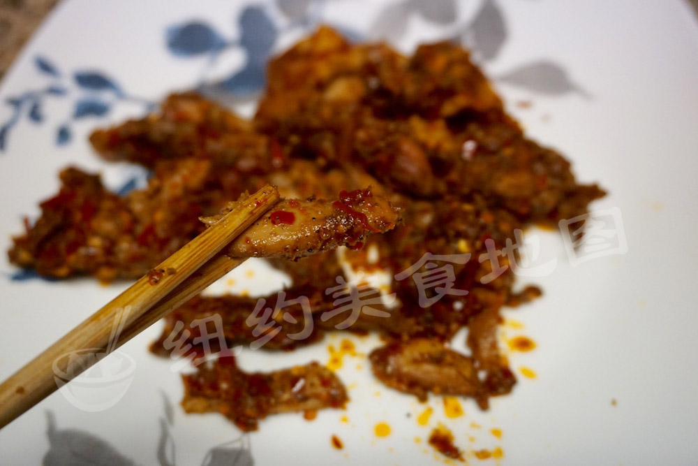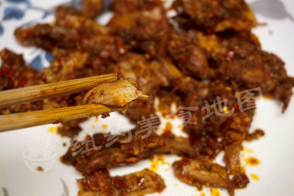 兔肉用特制调料腌制过烤熟撕成小条,再加配料拌好,这款麻辣鲜嫩,兔肉细嫩,越咀嚼越能感受到兔肉特有的微甜。