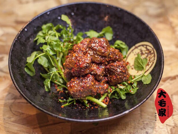 1.全部原配料选材考究,花椒和辣椒乃川卤的灵魂。 大毛选用汉源的干花椒,为了保留新鲜干花椒的原始香味儿,自己加工磨粉再密封保存;干辣椒特选朝天椒中的子弹头,也全部来自四川。光辣油的制作就需要一周 的时间。卤汤采用猪骨和15种香料一同熬制。配料都这么讲究,只为更多的在美国还原最地道的川味。