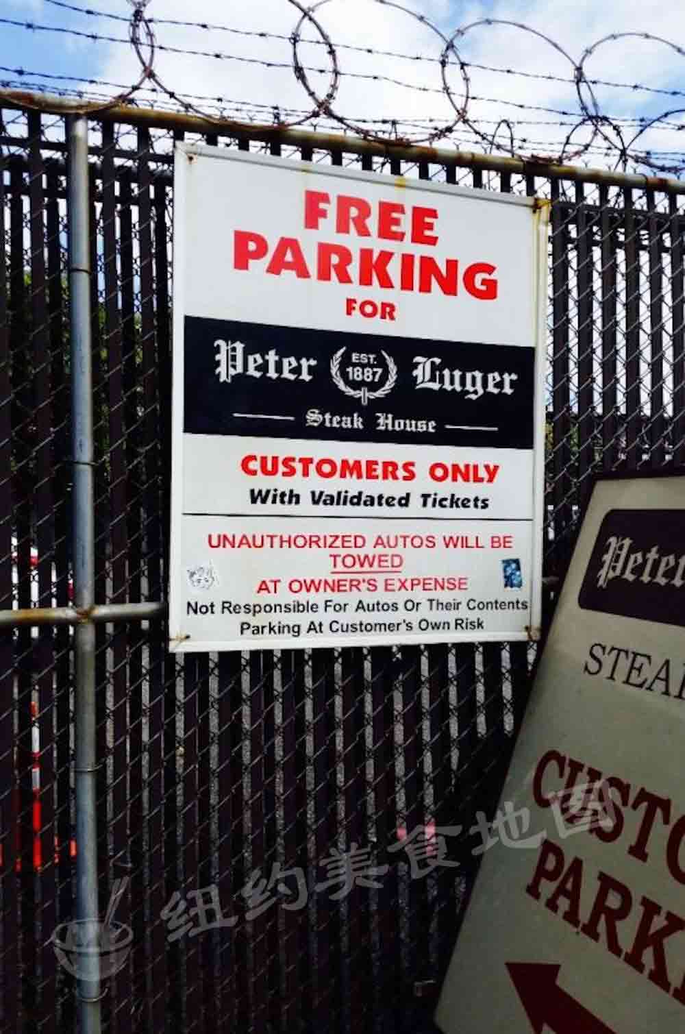 长辈远道而来,强调一定要是吃地道’纽约’美食,于是Peter Luger当然是小蚊心中不二选择。选择了一个周中的中午(提前一周开始预定,结果一周所有晚餐都订满),一行人驱车来到布鲁克林威廉斯堡,Peter Luger豪气的拥有专属客人的免费停车场,这在纽约餐厅中可是非常少见,所以驱车前来的朋友不用担心趴车问题。