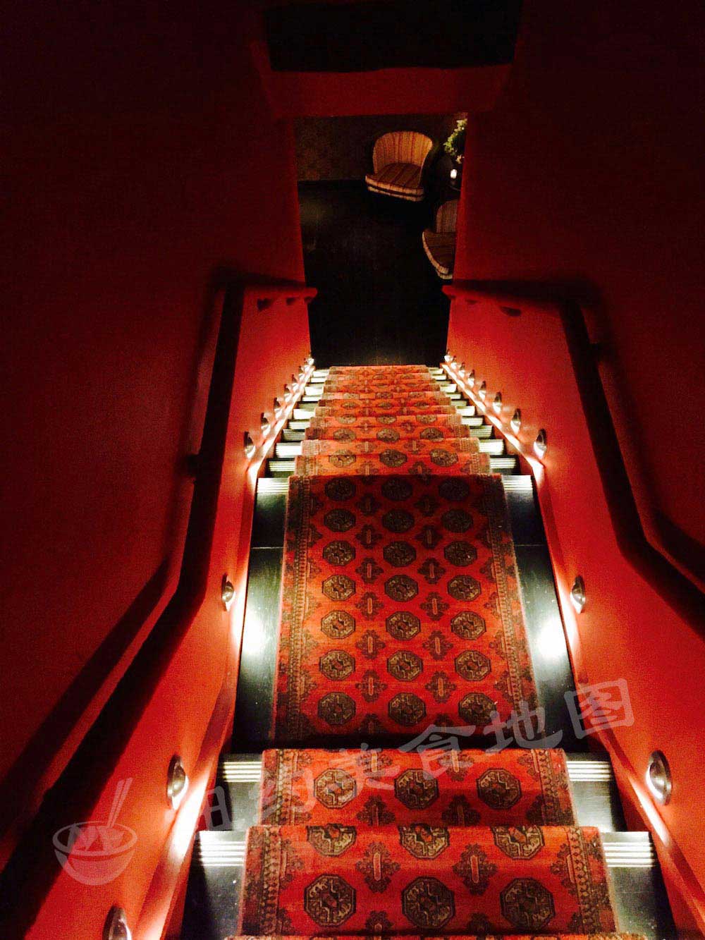 下楼的红梯,慵懒的灯光给餐厅蒙上了慵懒的味道,有点小暧昧
