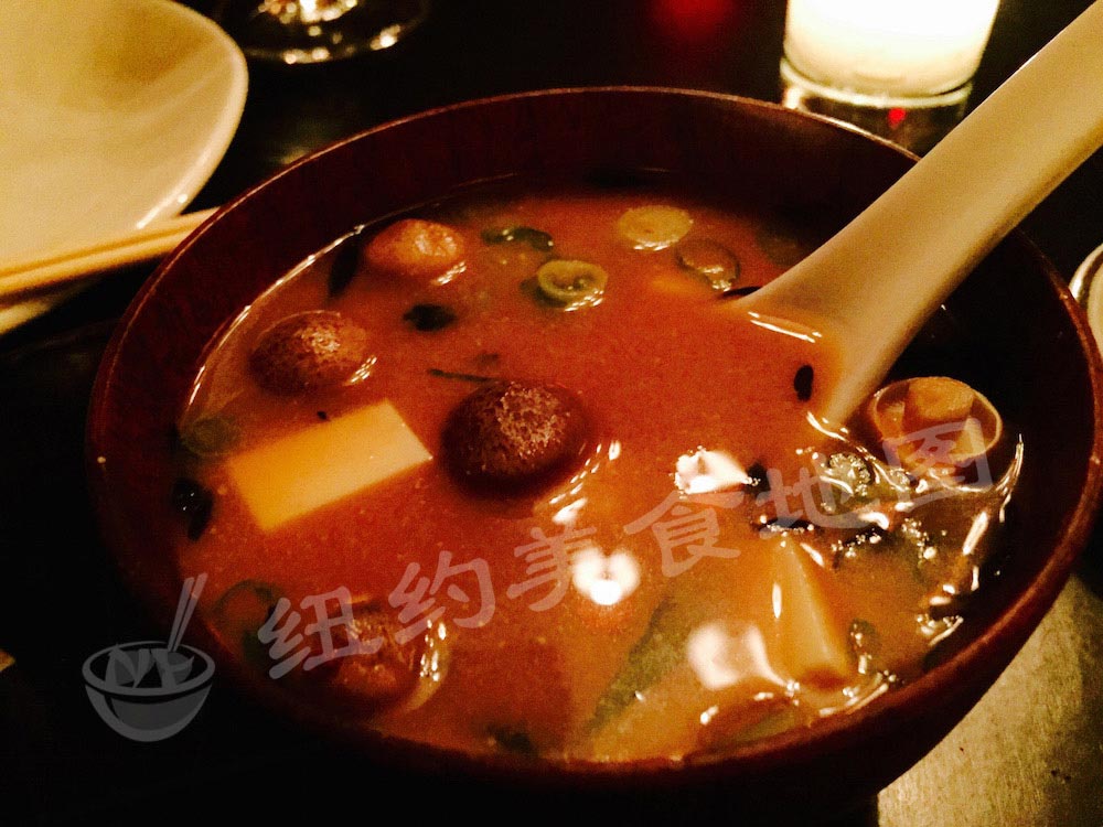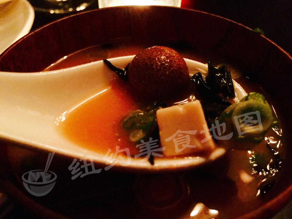 很浓的汤,红味噌调的汤,微咸。小蘑菇是用汤的热度泡熟的,鲜度很够。豆腐滑如凝脂,汤不错!