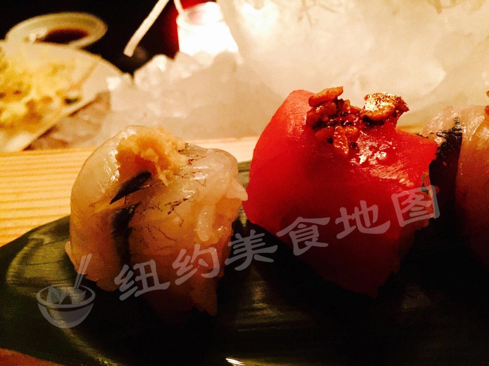 从左到右分别是 Niddle, Tuna, Yellowtail,Sweet Shrimp.印象较深的是甜虾的脆度和新鲜度都很不错。