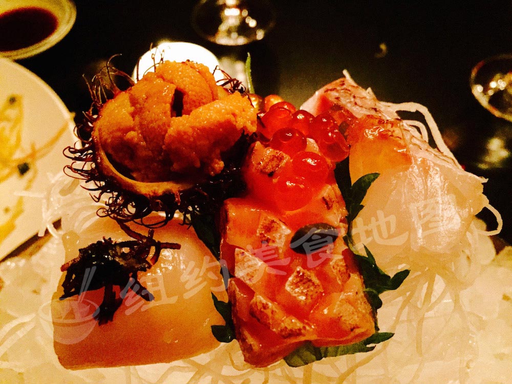刺身也还不错,微炙的三文鱼腩油脂很丰富,入口即化。扇贝也很甜,海胆则是不怎么地,小到只能装在红毛丹的壳里。。。。