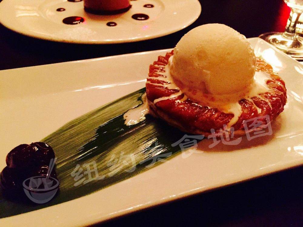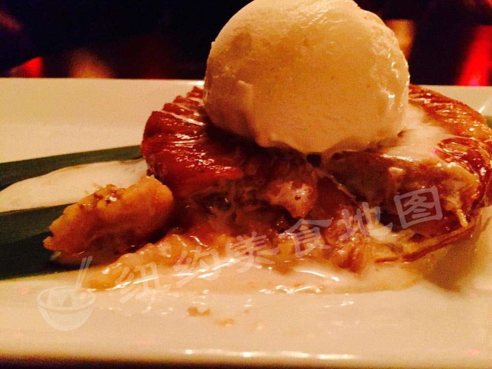 法式和风的甜点是不是都这么赞?!香蕉塔的饼皮有点像CREPE,铺上一层新鲜的香蕉烤的热热的,然后扣上一个清甜的香草冰淇淋球,香蕉塔的温热让冰淇淋化成糖浆,配在一起吃,香蕉的香浓混合香草的清新带着香蕉的微酸,很赞的一道!