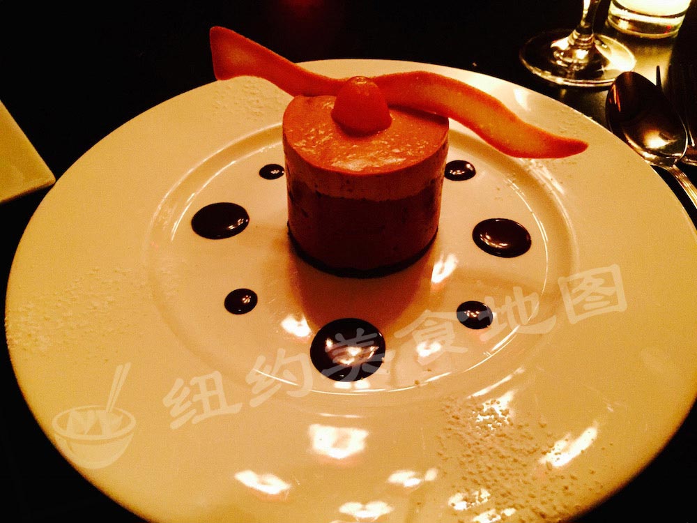 看上去有点RICH,吃起来其实还好。巧克力慕斯的层次很多,入口很细腻因此让人能有耐心吃完,甜度很淡,配上点缀的热巧克力酱竟然刚好! 很推荐