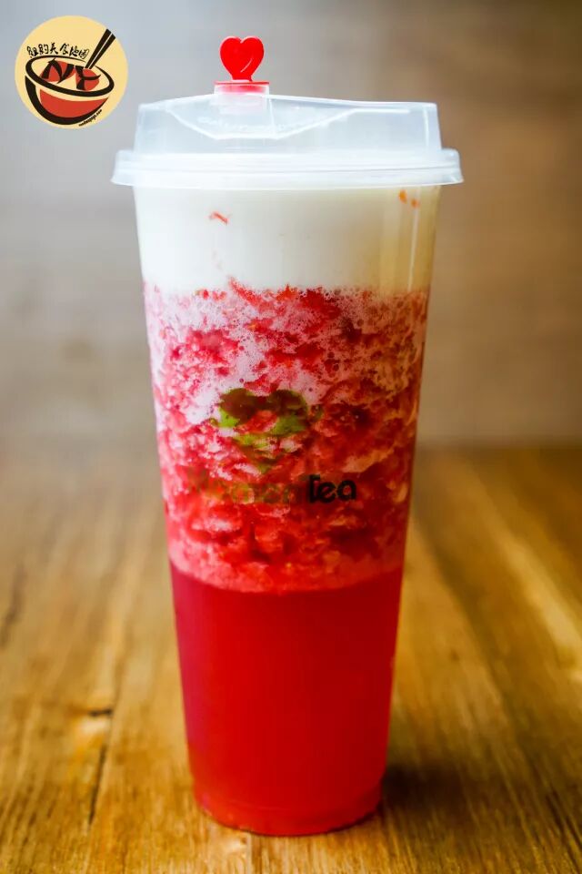 诱人浓厚的奶盖,如同一层柔软的棉被,覆盖在草莓冰沙上。红艳娇媚的外表简直就是颜值担当。