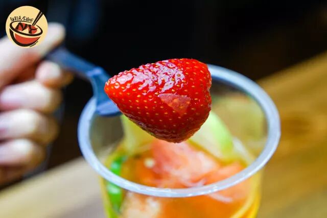 喝完再用勺子舀出里面的水果吃,这满满一杯VC真的值得拥有。